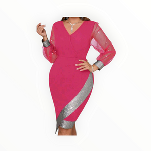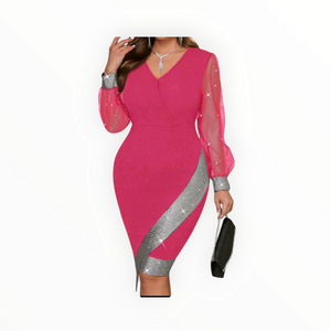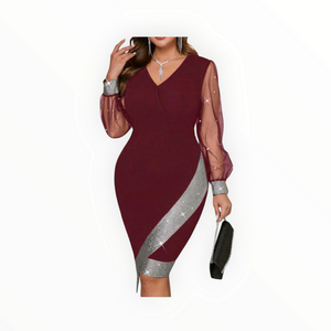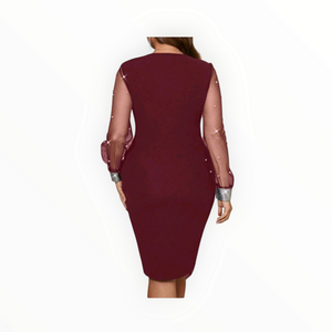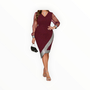 Elegant Mesh Splice Slim Fit Plus-Size Dress – Sexy, Sophisticated & Flattering Bodycon for Curvy Queens