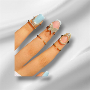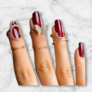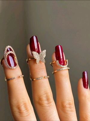 GlamSparkle 3-Piece Dainty Finger Ring Set – Butterfly, Teardrop & Zircon Accents