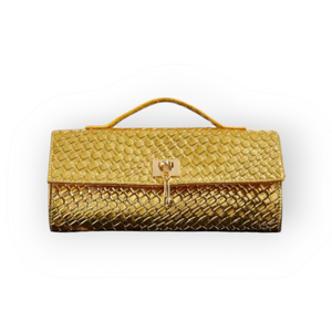 Home Golden Grace Woven Bag – Chic & Elegant Gold Woven Handbag | Esther Collective LLC