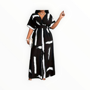 Maweii Plus Size Contrast Print Wide-Leg Jumpsuit – Bold, Elegant & Confidence-Boosting