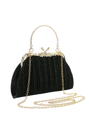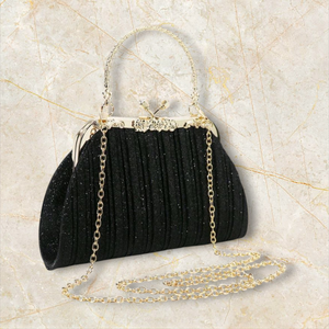 Royal Sparkle Top Handle Clutch Bag – Glitter Evening Purse (Royal Blue, Black, Silver)