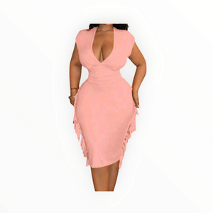SlayDiva Plus Size Fringe Patchwork Dress – Sexy V-Neck Bodycon for Special Events